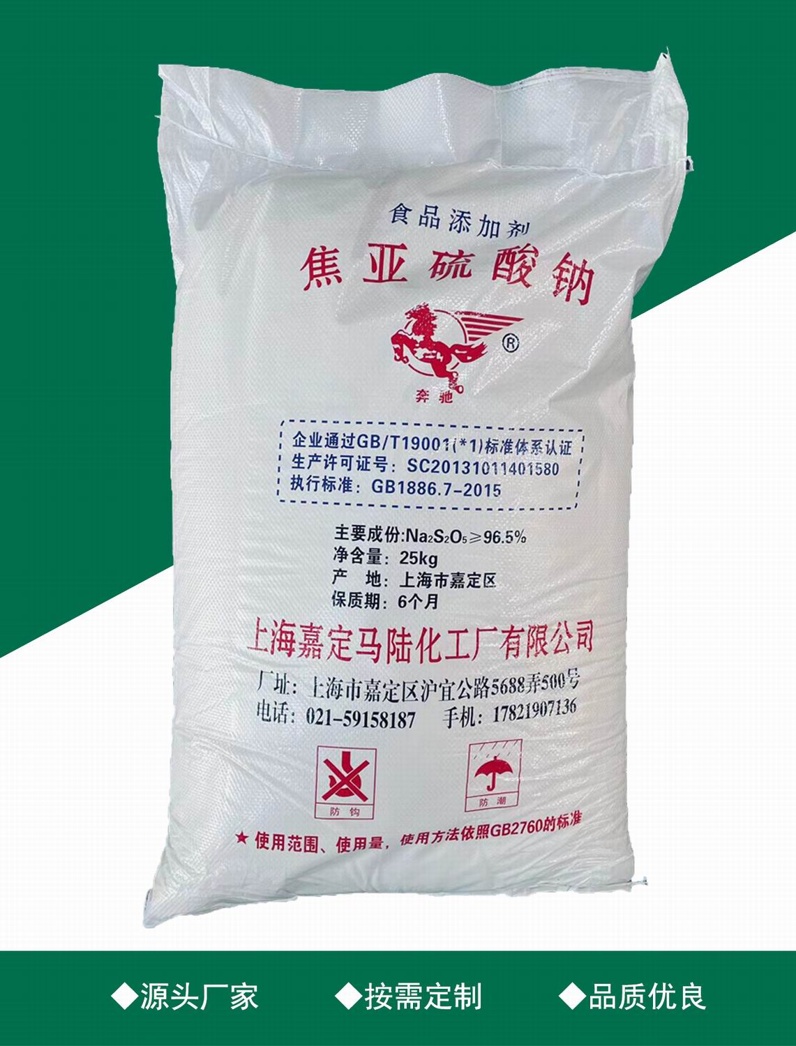 上海嘉定馬陸化工廠有限公司主營生產(chǎn),焦亞硫酸鈉、亞硫酸氫鈉等產(chǎn)品生產(chǎn),幾十年的專注焦亞硫酸鈉研發(fā)生產(chǎn),公司擁有完整、科學(xué)的質(zhì)量管理體系,為確保公司產(chǎn)品能夠長期立足于市場,增強客戶的粘性,可滿足客戶的非標(biāo)定制需求,可提供產(chǎn)品各個用途的解決方案,公司重信譽、守合同、保質(zhì)量、快速發(fā)貨以,我們擁有專業(yè)的售前售中、售后團隊共同協(xié)作,確保用戶采購中的每個環(huán)節(jié)都能有滿意的體驗度。